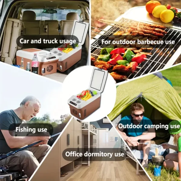 Colder and warmer in one, meets your diverse requirements The compact size saves much more space and makes it easy to carry The large 15L capacity allows you to store many more cosmetics and skincare products Controllable temperature range Easy-to-use display panel for simple operation Lightweight design makes it portable to take anywhere Has low noise and low energy consumption Versatile use for dorm, office, bedroom, car Product details External dimensions: 46.5 x 25 x 29.5 cm Capacity: 15 liters Voltage: 12V/24V(DC) Rated power: 40W~60W Temperature control range: -8C / 65C Noise: ≤45dB Package 1 X car fridge freezer 1 X DC power cable (12/24V)