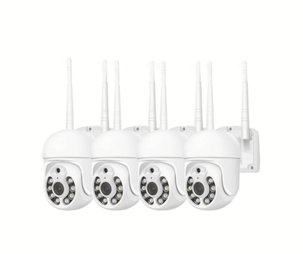 Set of 4 Outdoor Smart Wi-Fi Cameras, Motion Sensor, Night Vision, Live View on Phone