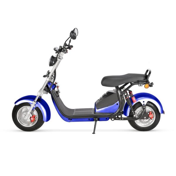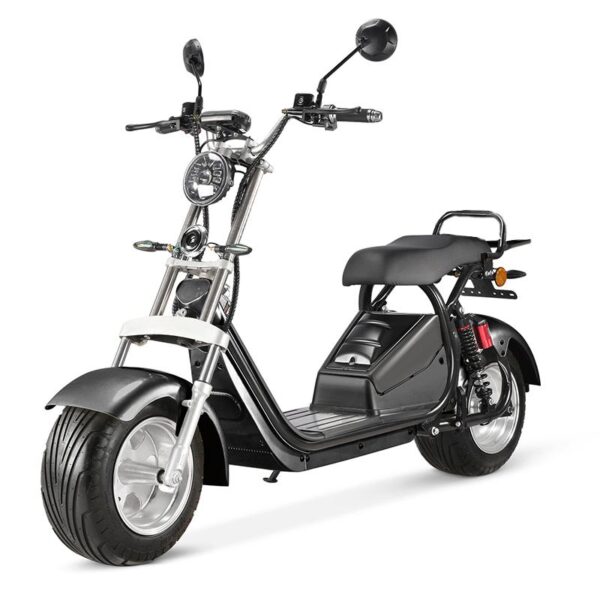 JRH Scuter electic este omologat pentru traficul rutier, este alimentat cu motor fara emisii de 1500W, baterie de 60V/20 Ah si o viteza de 45 Km/h.