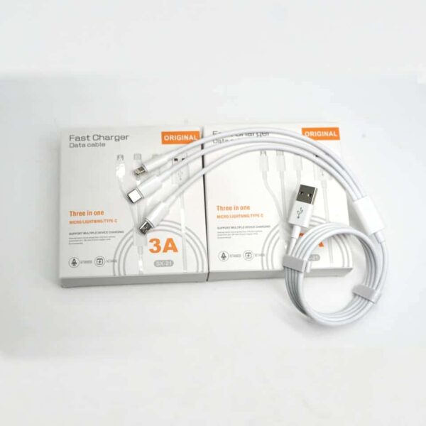 USB cable 3 in 1 JRH SX – 21, USB-micro USB/USB-C/iphone compatible, 3A, 1.2 m, white