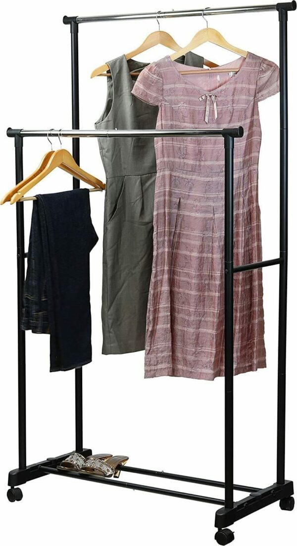 Double Mobile Clothes Rack, Metal Frame for Garments and Hangers