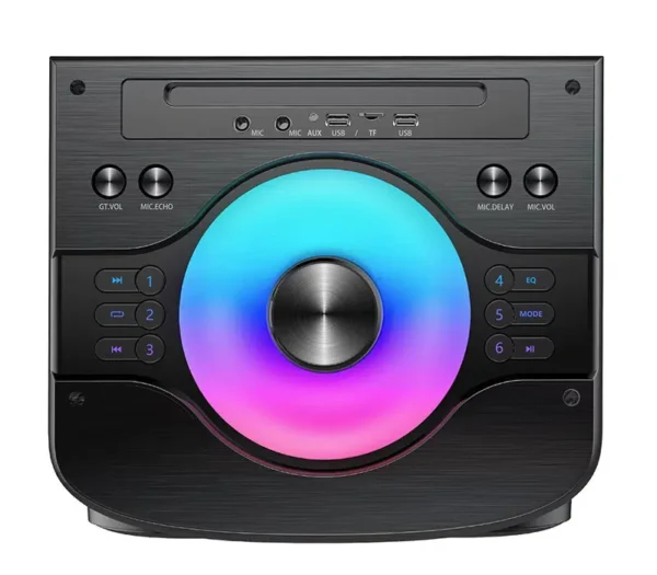 A JRH 700W hordozható hangfal ideális választás, ha erős hangzást, mély basszust és teljes party élményt szeretnél. Két 10 hüvelykes hangszóróval, RGB LED fényekkel és többféle bemenettel (Bluetooth, USB, SD, mikrofon) készen áll rendezvényekhez, karaoke-hoz és mindennapi szórakozáshoz.