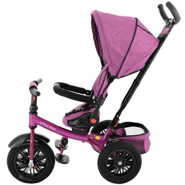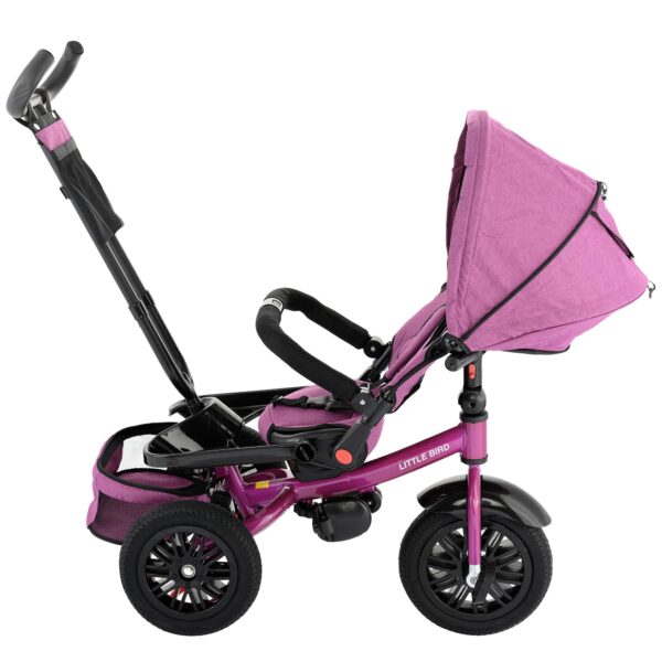 Tricicleta 4 in 1 rotativa cu pozitie de somn Little Bird pink/mov