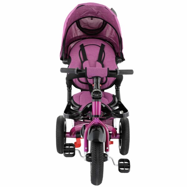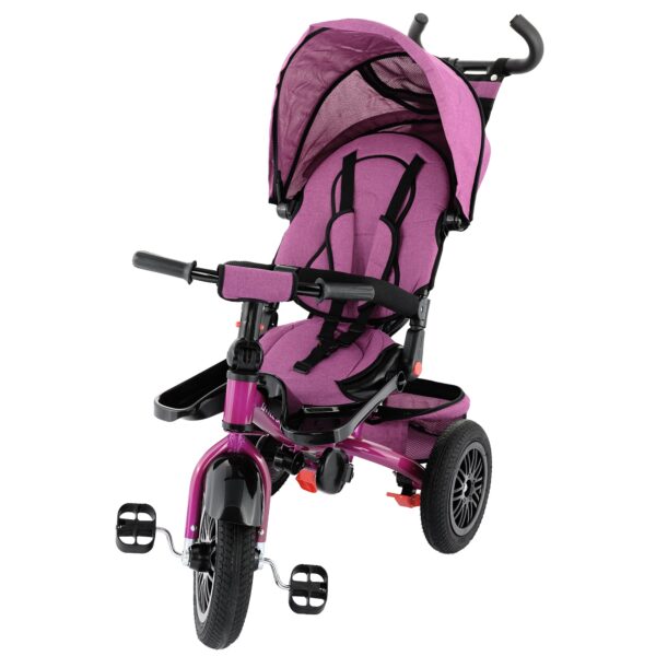 Tricicleta este echipata cu centuri de siguranta in 5 puncte, sezut placut si parasolare mare .